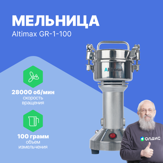 Мельница Altimax GR-1-100 включают в себя мощный двигатель, способный обеспечить высокую скорость вращения ротора, что позволяет быстро и эффективно измельчать материалы различной твердости.