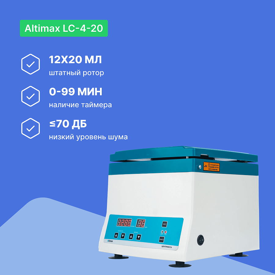 Центрифуга лабораторная Altimax LC-4-20 представляет собой высокоточное и надежное устройство, способное разделять жидкие образцы на фракции с использованием центробежной силы. Ротор выступает основным компонентом центрифуги Altimax LC-4-20, способным вмещать необходимое количество пробирок различного объема. Кроме того, центрифуга Altimax LC-4-20 оснащена корпусом, приводным элементом, а так же электрическим управляющим элементом. Центрифуга лабораторная настольная Altimax LC-4-20 нашла свое применение: — В научно-исследовательских и медицинских центрах; — В етеринарных клиниках; — В фармацевтических, косметических, а также химических производствах; — В пищевой промышленности. Центрифуга лабораторная медицинская Altimax LC-4-20 — является надежным помощником при проведении лабораторных исследований, гарантируя высокую эффективность и точность получаемых результатов.