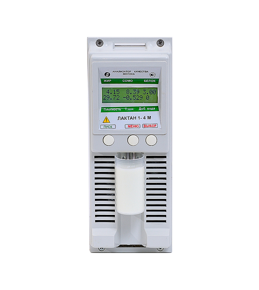 Высокая производительность в анализаторе качества молока «Лактан 1-4 М» (с функцией пробоподготовки) сочетается с высокой точностью определения всех необходимых параметров качества молока при максимальной простоте использования.