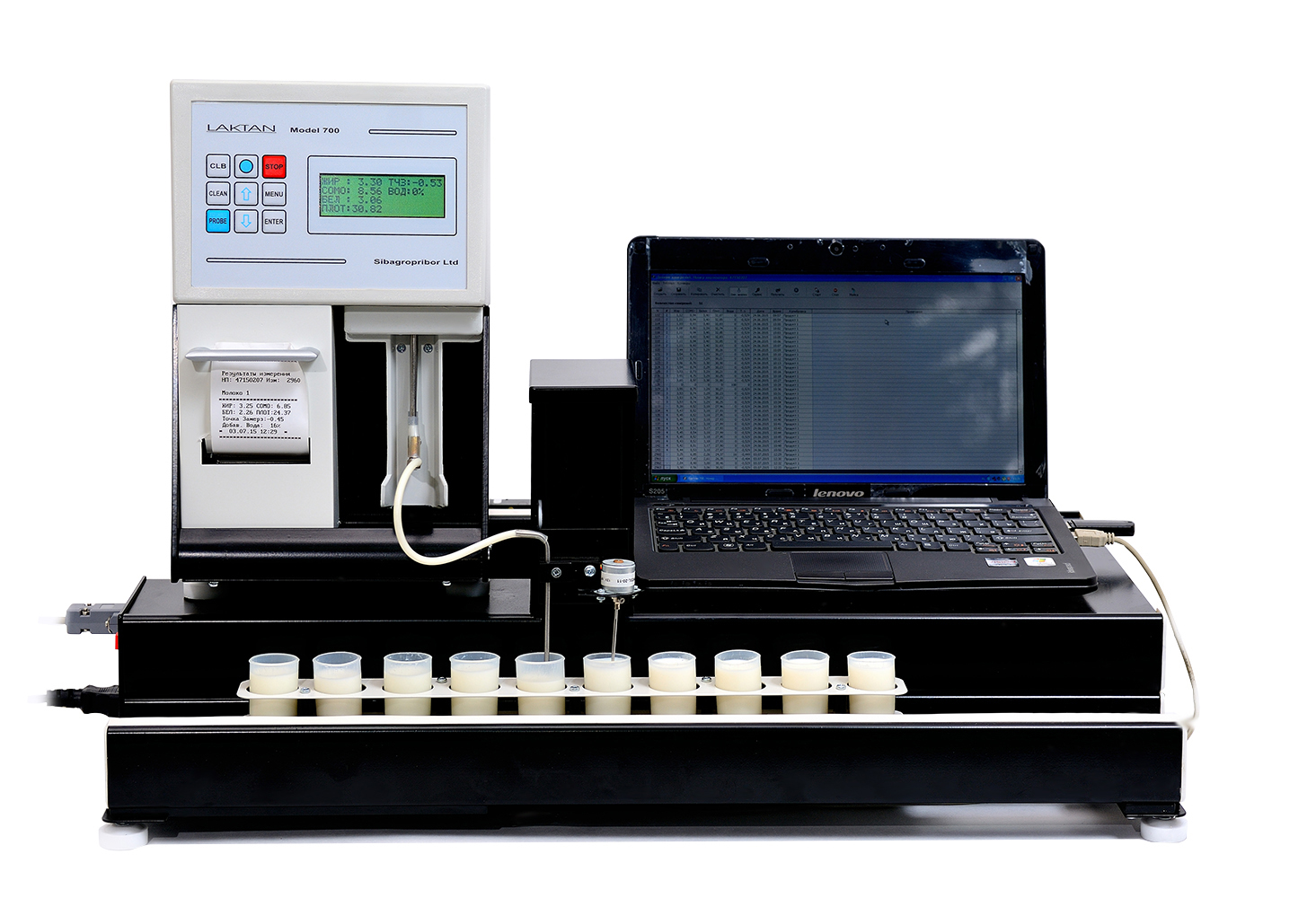 Автоматизированный измерительный комплекс «Лактан» исп. 700 управляется с помощью компьютера. В комплекте с анализатором поставляется все необходимое для подключения, включая USB кабель и программное обеспечение под Windows.