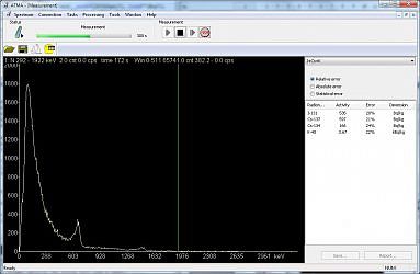 • вычисление активности и погрешности измерения гамма-излучающих радионуклидов 131I, 134Cs, 137Cs, 40K, 226Ra, 232Th