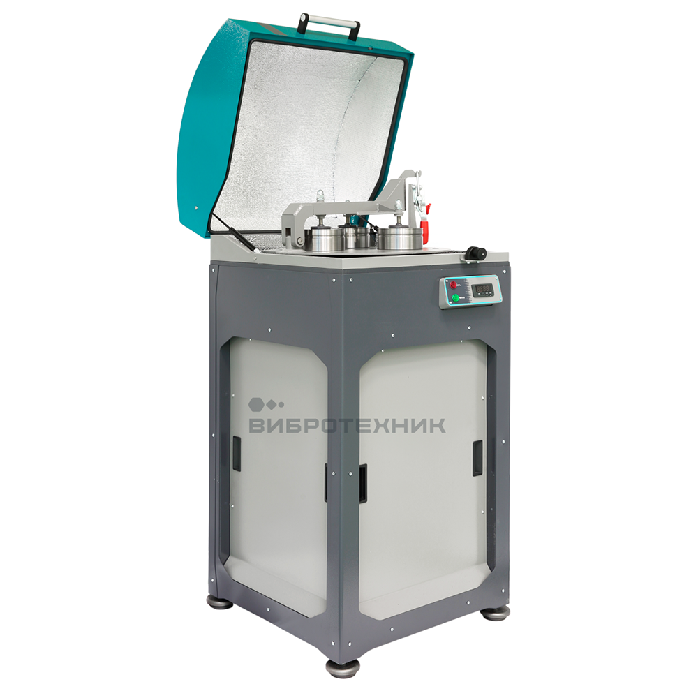 Крышка, смонтированная на плите, предназначена для звукоизоляции и ограничения доступа к колеблющимся частям истирателя и оснащена концевым микровыключателем для предотвращения подачи питания на электродвигатель при открытой крышке.