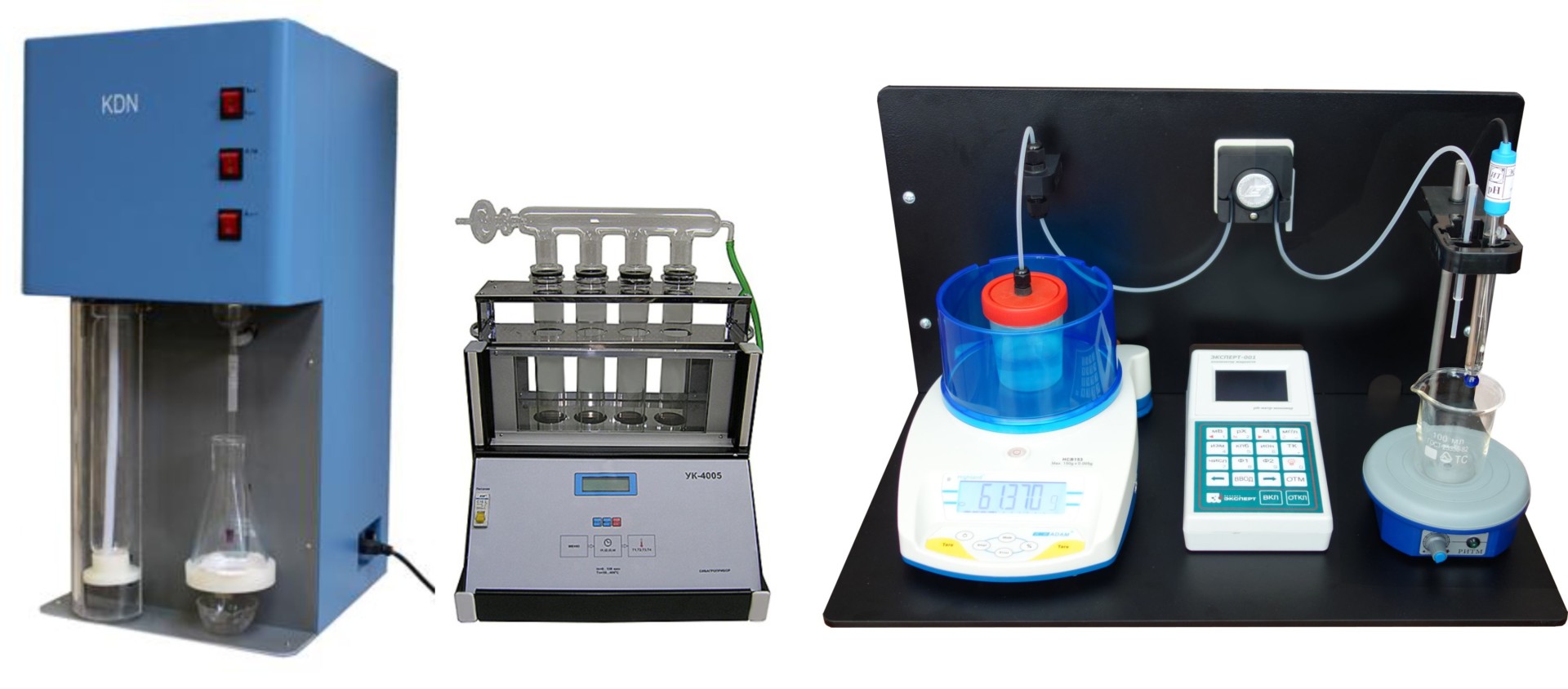 Определение азота или белка в пищевых продуктах, молочных продуктах, кормах, воде, напитках, медикаментах, химических веществах, почве в соответствии с ГОСТами.