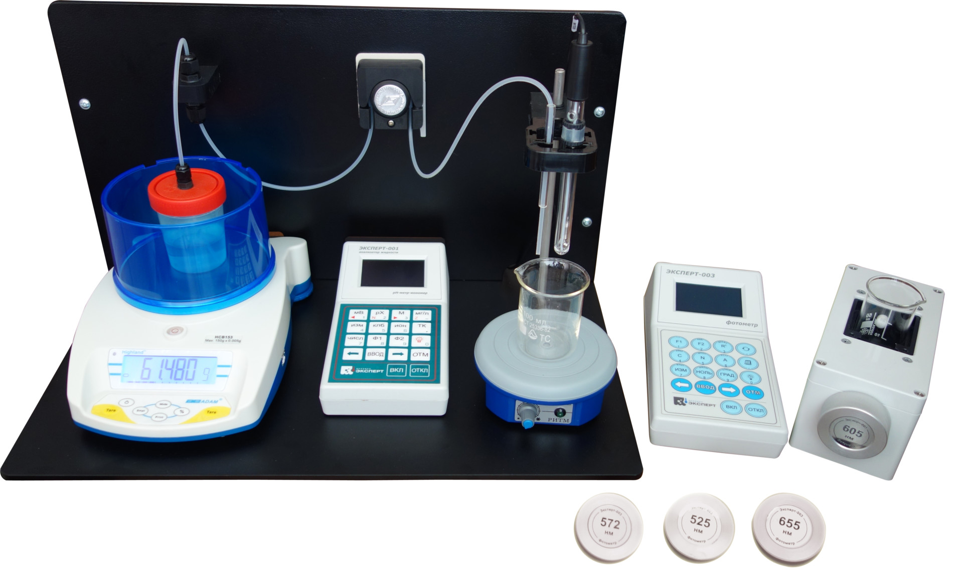 Комплект включает оборудование для автоматического титрования двумя методами: потенциометрическим (измерение ЭДС электродной системы анализатором «Эксперт-001») и фотометрическим (измерение оптической плотности раствора при изменении его окраски фотометром «Эксперт-003»). Представляет собой комплект «Титрион-1-3» (или «Титрион-1-3А»), укомплектованный электродными системами и сменными источниками излучения.