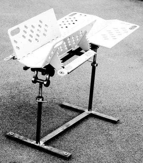 • Столешница установлена на станине с помощью двух телескопических стоек, позволяющих в широком диапазоне варьировать высоту стола и угол наклона стола в продольном направлении.