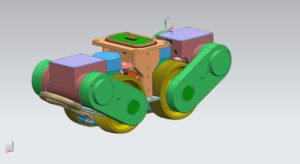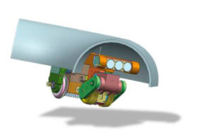 - Встроенный в мотор-колесный модуль 3-х осевой МЭМС-инклинометр фиксирует угловое положение каждого модуля (погрешность измерения ± 0,1 градус), что позволяет реализовать функции трассировки пройденного участка ТТ КС и управления движения сканера-дефектоскопа в автоматическом режиме.