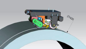 - Прохождение сканера-дефектоскопа по внутренней полости ТТ КС по элементам различного сортамента (трубы, отводы, тройники, переходы, ЗРА) Ду 300-1400 мм обеспечивается конструкцией механической платформы.