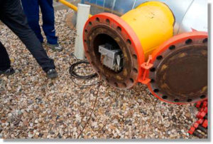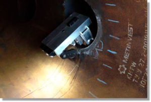 - Обследование основного металла и сварных соединений элементов трубопроводов с применением телевизионно-оптической системы (визуально-измерительный контроль) и антенных решеток с акустическими датчиками с сухим точечным контактом (волноводный ультразвуковой контроль, поперечная ультразвуковая волна SH-поляризация).