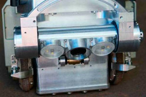 - На сканере размещены два идентичных блока телевизионно-оптической системы – в передней и задней частях корпуса. Направление обзора определяется оператором. Вторя камера необходима при реверсном перемещении сканера в трубах малого диаметра (Ду менее 500 мм), в которых невозможно выполнить разворот сканера.