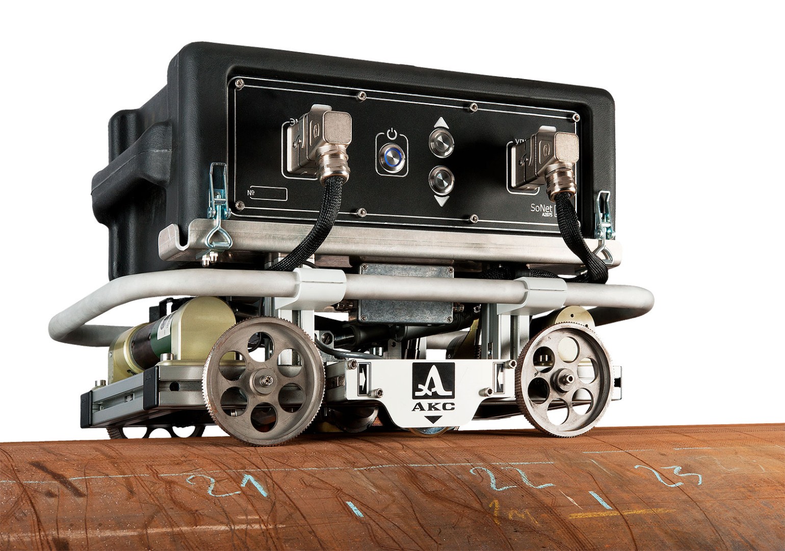 Ультразвуковой бесконтактный сканер-дефектоскоп «А2075 SoNet» предназначен для решения задачи автоматизированного поиска дефектов в стенках металлических труб диаметром от 720 мм до 1420 мм с толщиной стенки от 6 мм.