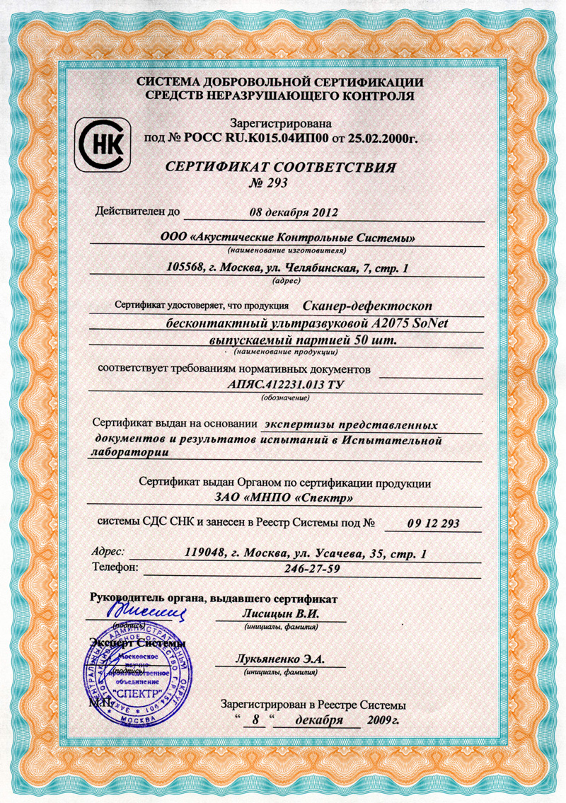 • постобработка сканограмм и регистрация результатов с указанием величины, местоположения, ориентации и типа дефекта.