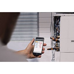 Компания Testo предлагает Вам максимальную мобильность при проведении измерений: смарт-зонд манометр высокого давления testo 549i, разработанный для применения со смартфоном или планшетом, идеален для пусконаладки, сервисного обслуживания и диагностики холодильных систем и кондиционеров, и для этого Вам не потребуется ни единого провода. Измерительный прибор быстро и легко устанавливается на самой системе под давлением. testo 549i существенно упрощает работу с удаленными друг от друга точками замера, поскольку все измеренные значения передаются на смартфон или планшет по беспроводному каналу. Не менее практично и полностью бесшланговое подсоединение прибора к системе, что обеспечивает минимальные потери хладагента. При одновременном использовании с термометром для труб (зажимом) testo 115i также возможен расчет отдельных параметров холодильных систем.