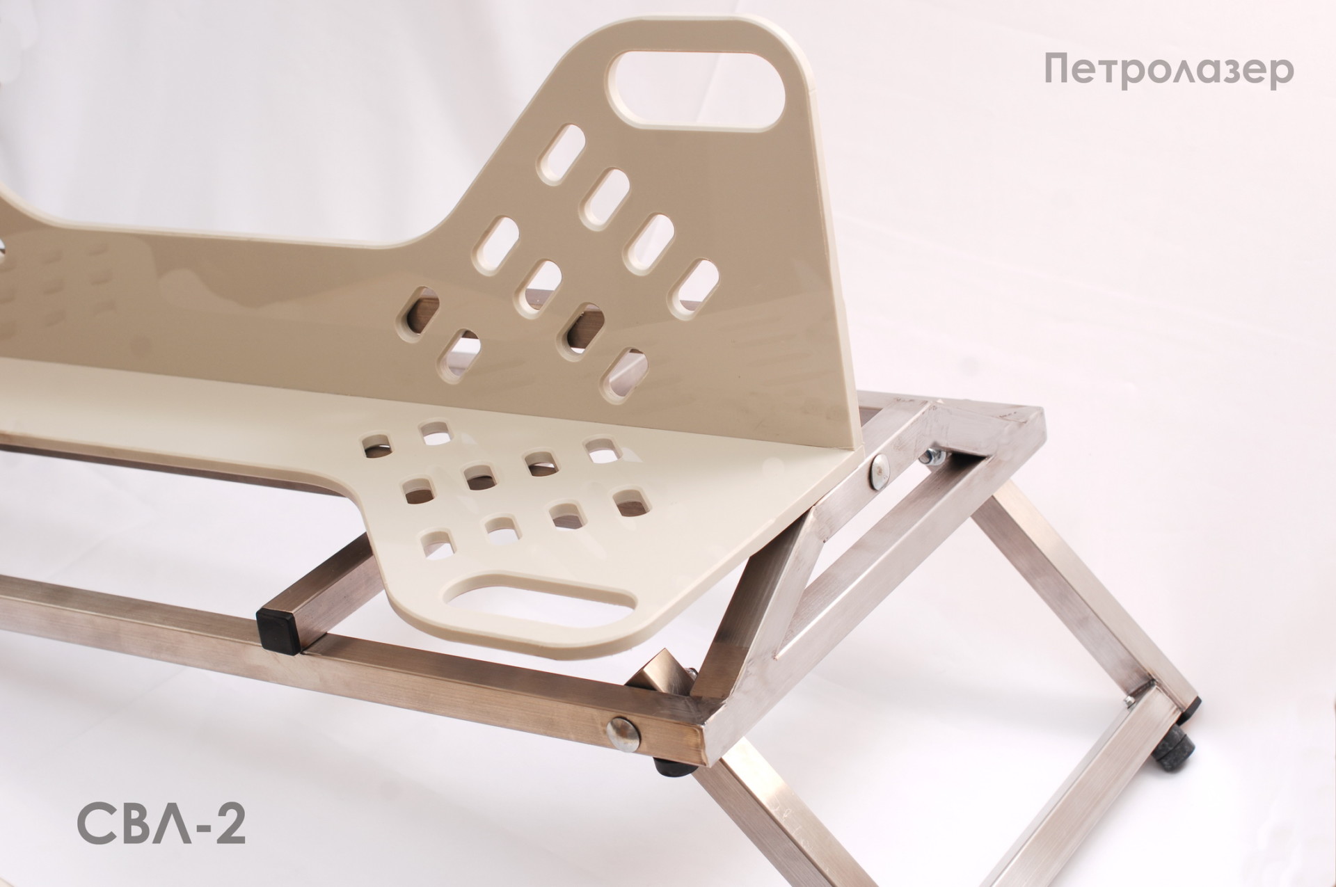 Станок ветеринарный  СВЛ-2— предназначен для размещения и фиксации животных при малоинвазивных хирургических вмешательствах, в том числе эндоскопических (лапароскопических) . Наличие регулировки наклона ложемента позволяет выбрать при инсуфляции оптимальное положение пациента, Трендленбург или анти- Тренденбург. Станок может устанавливаться на любые типы операционных столов , имеющих размеры столешницы не менее 915х500 мм. Например, стол ветеринарный Семенюка подходит для этой цели и позволяет регулировать дополнительно высоту расположения операционного поля.
