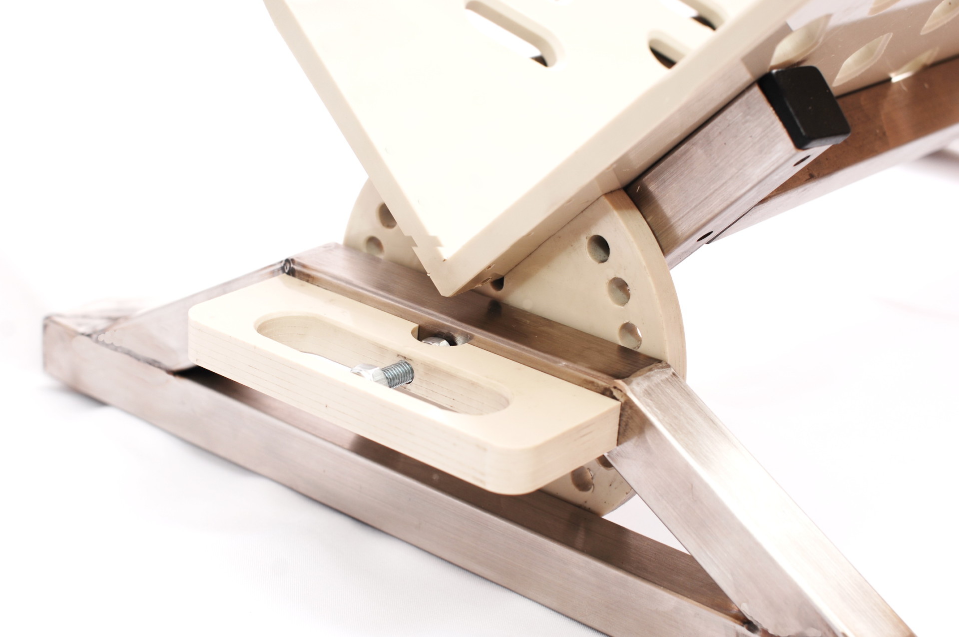 Регулировка положения пациента вдоль продольной оси тела позволяет получить доступ к органам брюшной полости, перемещая их для удобного доступа при диагностике и проведении оперативного вмешательства. Для удлинения ложемента, с целью разместить на СВЛ-2 более крупное животное, в комплектацию может входить удлинитель. При проведении артроскопических манипуляций с использованием артроскопа — к изделию комплектуется дистрактор конечностей. К этому станку ( накладке на стол) мы также выпускаем электропривод, для перекладывания фиксированного животного с боку на бок без усилий и фиксации в любом промежуточном положении. Управление приводом — от педали  (см. Фото 6, 7). Поверхности СВЛ-2 выполнены из химически стойкого полипропилена толщиной 10 мм и позволяют любые способы дезинфекции. Для фиксации животного в ложементе предусмотрено множество удобно расположенных отверстий.