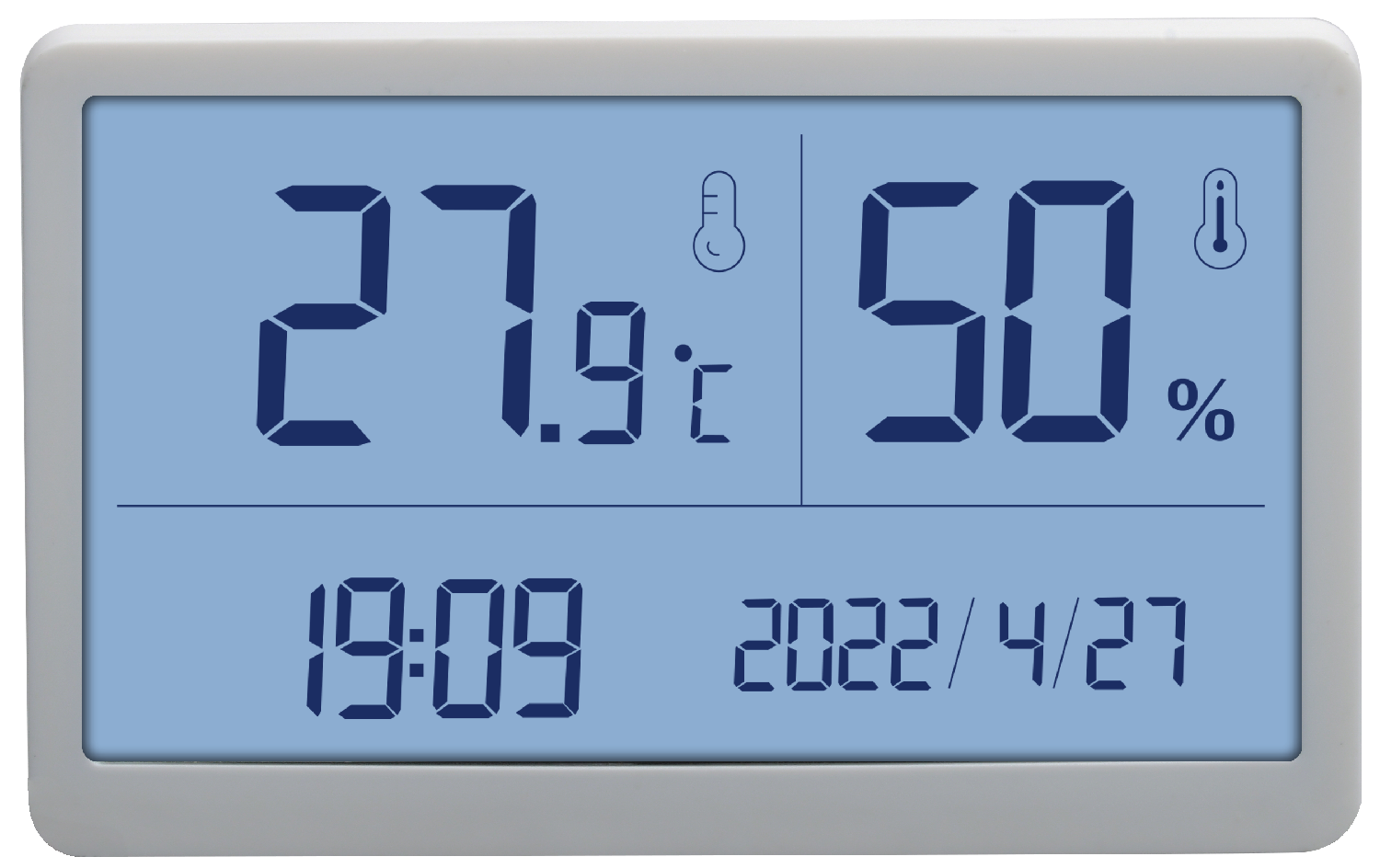 • Малый (100*62*15 мм) размер и компактное моноблочное исполнение для настольного размещения термогигрометра.