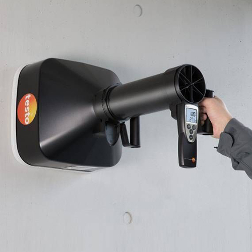Компания Testo – единственный производитель измерительных решений для быстрых и одновременно высокоточных замеров на вихревых диффузорах. Оптимальную поддержку при измерениях скорости потока воздуха на вихревых диффузорах Вам окажут анемометр с крыльчаткой testo 417 и инновационный выпрямитель потока testovent 417.