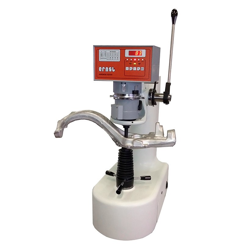 Предварительная и основная нагрузки производятся автоматически простым нажатием на рычаг. Образцы сложной формы зажимаются на предметном столе специальными зажимами. При отклонении образца, специальный запатентованный фирмой Ernst кожух индентора смещает образец должным образом, что обеспечивает точное и надежное измерение.