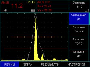 Режим огибающей для надежной фиксации максимума сигнала, предназначенный для оценки формы дефекта при ультразвуковом контроле сварных швов и основного металла.
