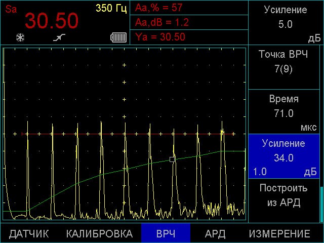 • ВРЧ с диапазоном до 70 дБ, 12 дб/мкс с построением кривой по 32-м опорным точкам и АРК