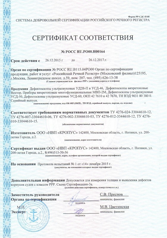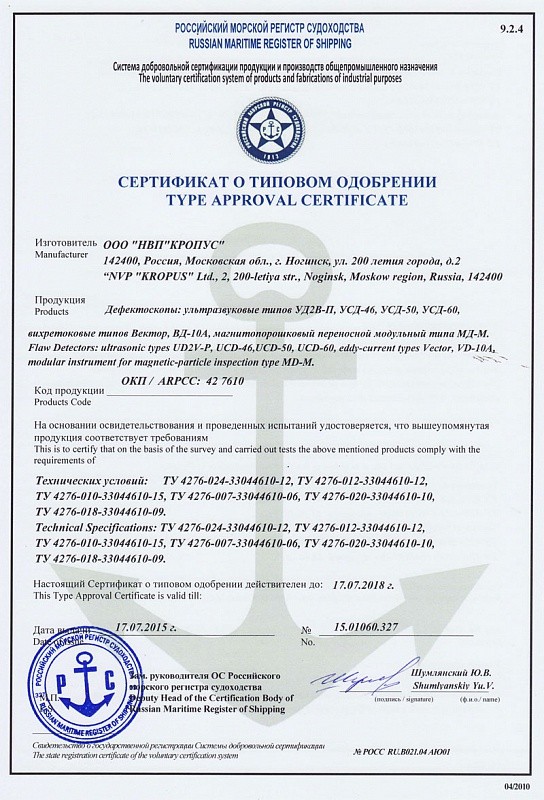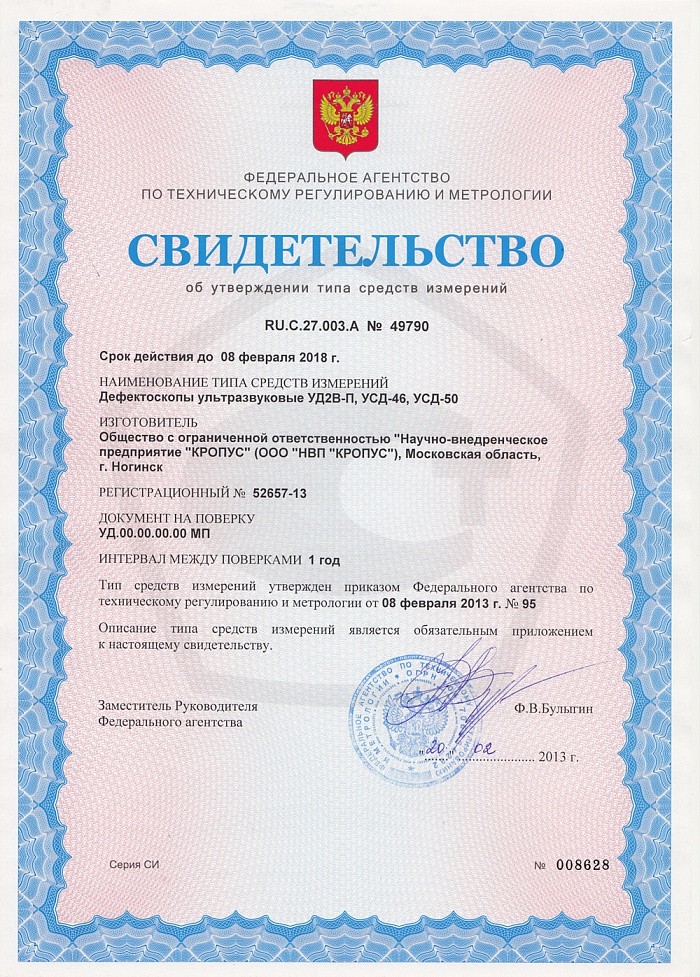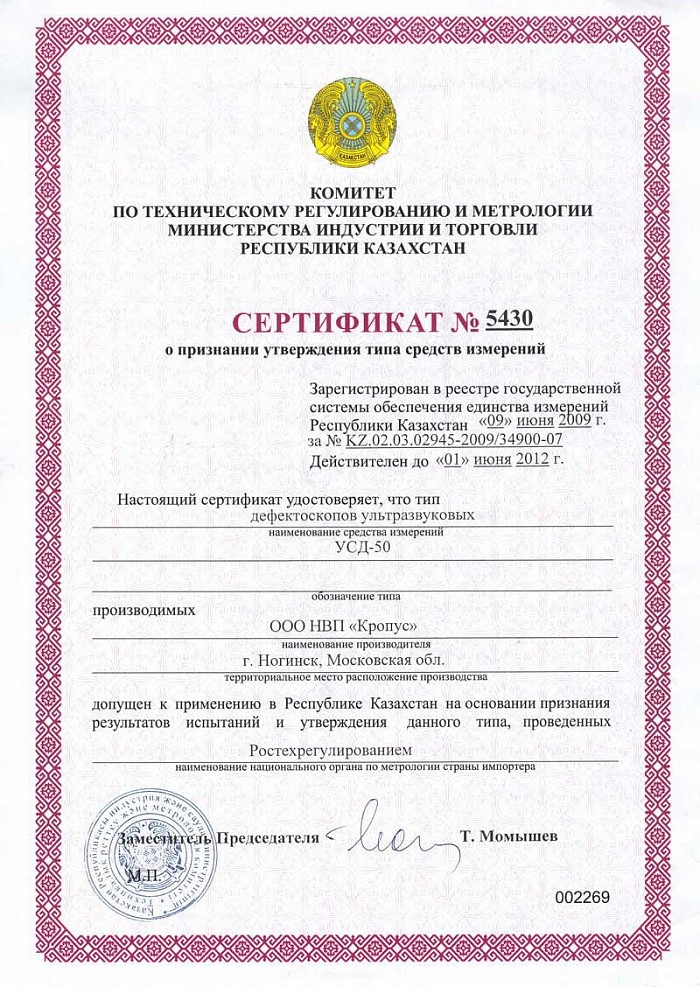 Сертификат Госстандарта России RU.C.27.003.A №27966, зарегистрирован в Государственном реестре средств измерений под №34900-07 и допущен к применению в Российской Федерации.