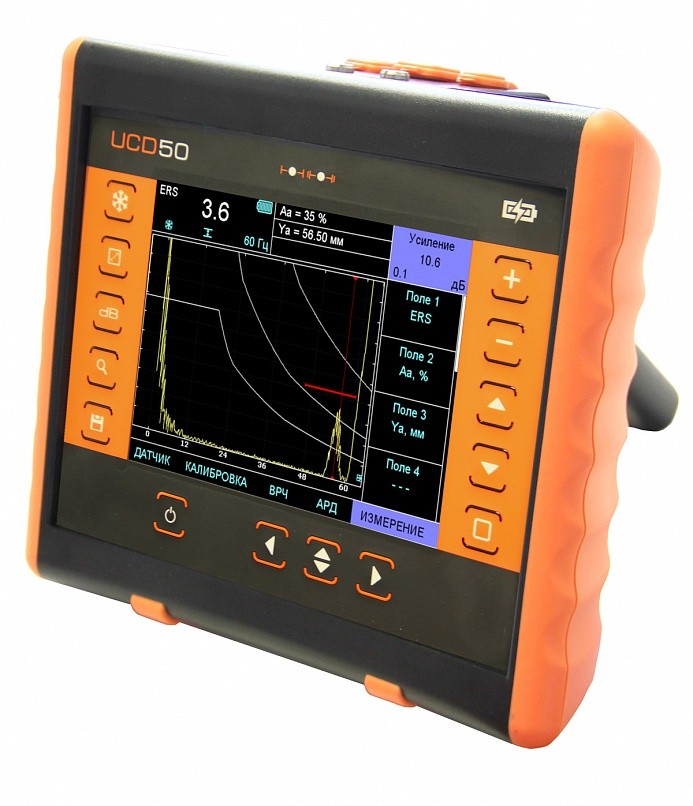 Ультразвуковой дефектоскоп нового поколения УСД-50 IPS в специально разработанном ударопрочном корпусе с классом защиты IP65 — представляет собой симбиоз суперсовременной электронной архитектуры и новейших программных подходов к обработке сигналов.