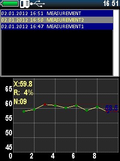 Пример отображения сохраненного результата измерения в памяти прибора.