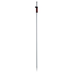 Алюминиевая веха с винтом, имеющим резьбу 5/8 дюйма. Защелкивающиеся фиксаторы на 1,80 м и 2,00 м. В комплекте с круглым уровнем. Минимальная длина 1,39 м, вес 950 г.