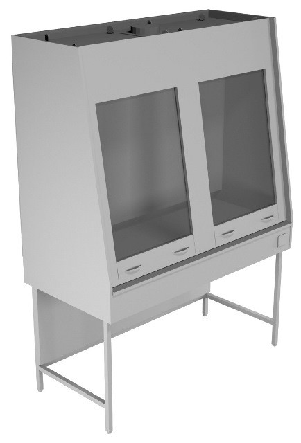 Вытяжной шкаф двухрамный НВ-1800 ШВд-М Лабораторный вытяжной шкаф двухрамный. Единое рабочее пространство с двумя зонами вытяжки. Без нижней подстольной тумбы. Вытяжные лабораторные шкафы применяется при работе с токсичными и вредными летучими материалами, с чистыми материалами, с растворением или разложением под температурной обработкой, при проведении анализа проб и многих других.Столешница вытяжного лабораторного шкафа в стандартной комплектации выполнена из ламината. Ламинат обладает рядом преимуществ: устойчив к кратковременному воздействию кислот, щелочей и органических растворителей, относительно влагостоек, непревзойденный материал столешницы по соотношению цена-качество Возможные варианты различного исполнения столешниц, стойких к агрессивным материалам, делают вытяжной шкаф незаменимым для любой лаборатории. В комплектацию вытяжного шкафа входит: рабочая камера: две подъемных рамы с противовесами, столешница ламинат, единое рабочее пространство,  две зоны вытяжки светильник люминесцентный с одноклавишным выключателем цельносварной металлический каркас в порошковой окраске регулируемые по высоте опоры Дополнительная комплектация (по запросу): Столешница из нержавеющей стали Взрывозащищенное исполнение Вентиляционный блок, гофротруба Вытяжка из тумбы.