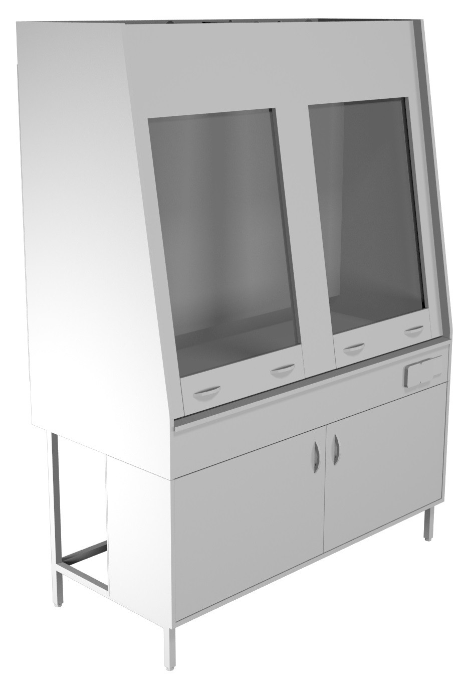 Вытяжной шкаф НВ-1500 ШВд-СПБ.  Лабораторный вытяжной шкаф с двумя рамами. Нижняя тумба с полкой. Вытяжные лабораторные шкафы применяется при работе с токсичными и вредными летучими материалами, с чистыми материалами, с растворением или разложением под температурной обработкой, при проведении анализа проб и многих других.Покрытие столешницы вытяжного лабораторного шкафа  выполнена из слоистого пластика. Слоистый пластик обладает рядом преимуществ: устойчив к продолжительному воздействию кислот, щелочей и органических растворителей Ограничено стоек к воздействию высоких температур Возможные варианты различного исполнения столешниц, стойких к агрессивным материалам, делают вытяжной шкаф незаменимым для любой лаборатории. В комплектацию вытяжного шкафа входит: рабочая камера: подъемная рама с противовесами, покрытие столешницы — полипропелен, две зоны вытяжки светильник люминесцентный с одноклавишным выключателем цельносварной металлический каркас в порошковой окраске регулируемые по высоте опоры 2 электророзетки нижняя тумба с полкой Дополнительная комплектация (по запросу): Столешница из нержавеющей стали Взрывозащищенное исполнение Вентиляционный блок, гофротруба Вытяжка из тумбы.