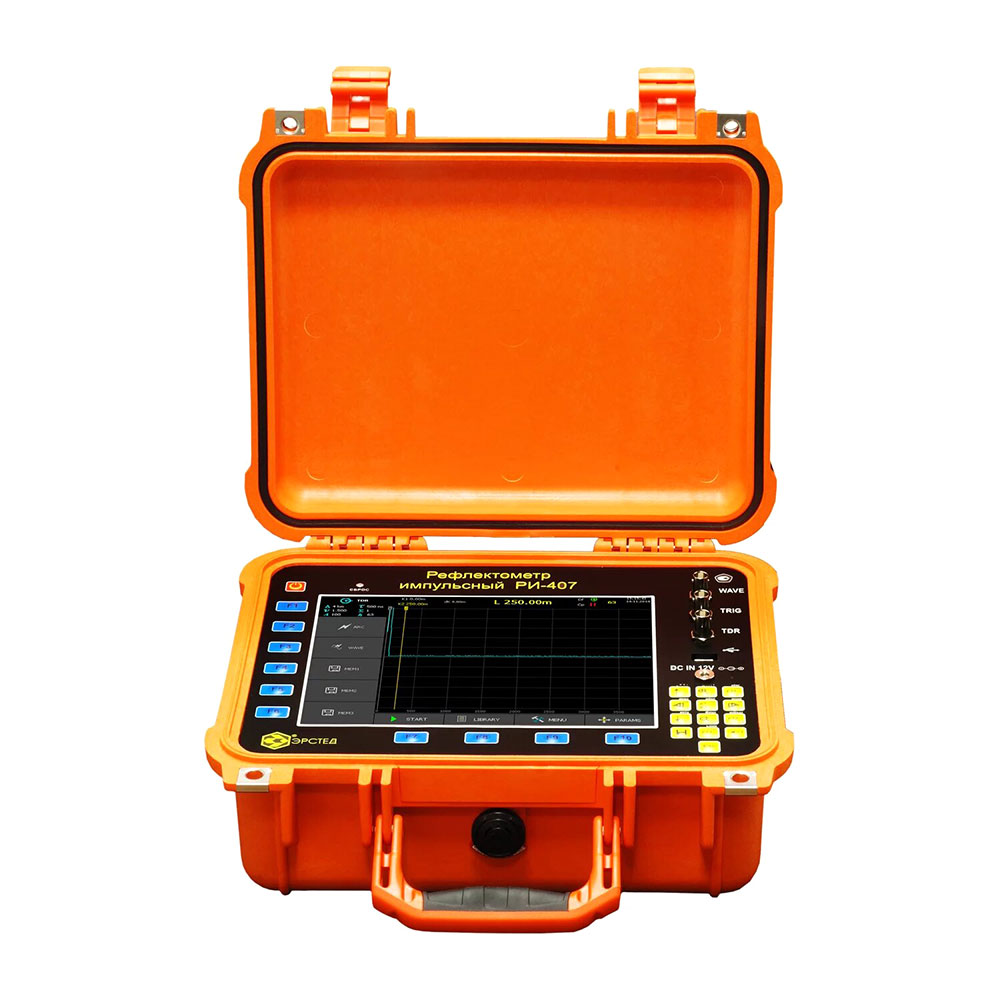 РИ-407 – высокоточный цифровой рефлектометр, специально разработанный для определения расстояний до любых типов неоднородностей и повреждений в силовых кабельных линиях: обрыв, короткое замыкание, муфта, сростка кабеля, параллельный отвод, замокание кабеля.